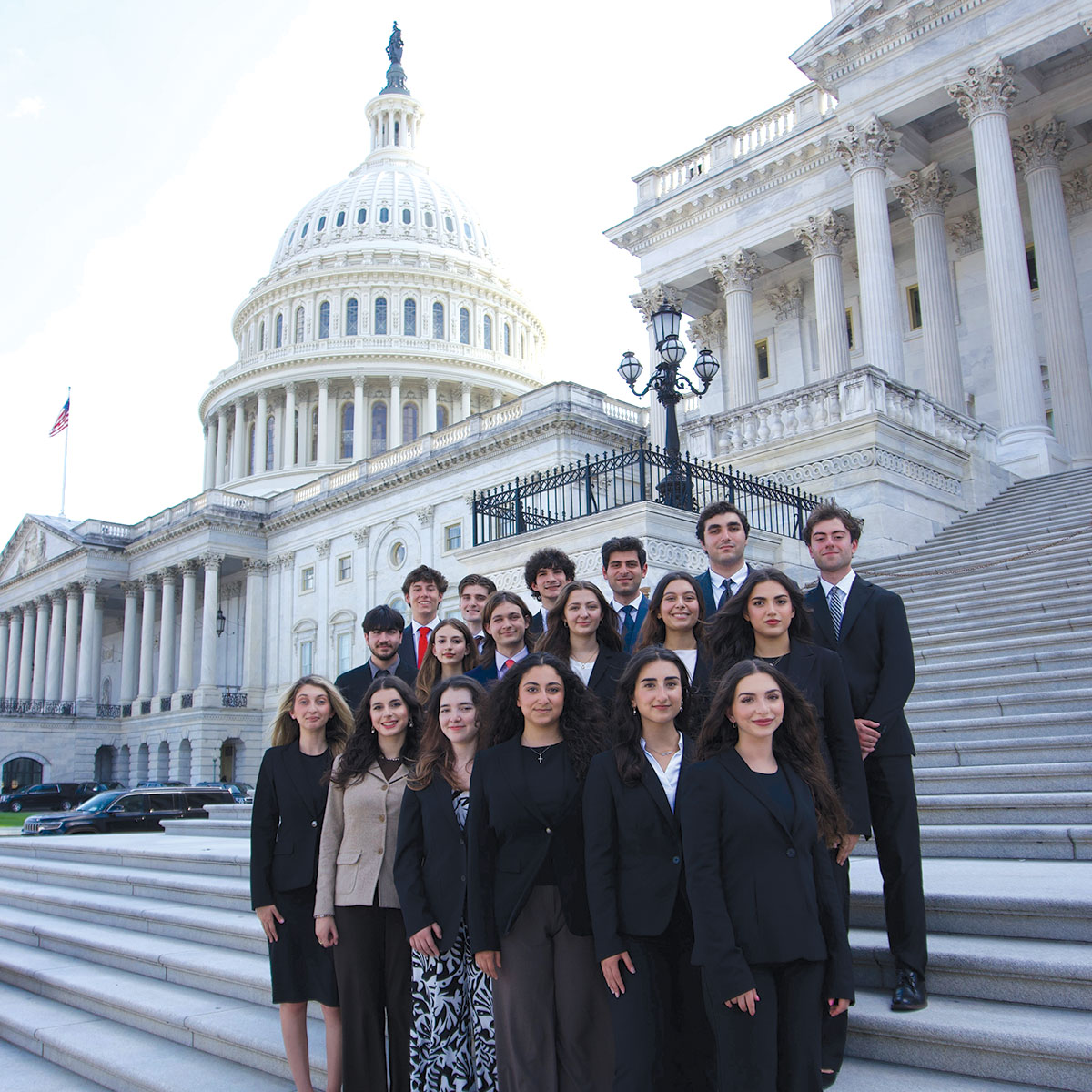 In addition to her internship with the Armenian Assembly, she has also worked with organizations such as the Armenian National Institute and became a program assistant for the Osgood Center for International Justice. Balancing three internships, her day-to-day varied, where some days she was advocating with the Armenian Assembly and some days she was with the Armenian National Institute helping build their website and conducting research, and there were days where she did both with the Osgood Center for International Justice. She participated by attending police briefings, hearings, and lecture series. Of these different events, her favorite part was advocating on the Hill by running from office to office, especially when she was able to guide others when collaborating with the Knights of Vartan. “This was an invaluable experience,” said Nellie. “It was cool to teach others how to advocate, in addition to advocating ourselves.”